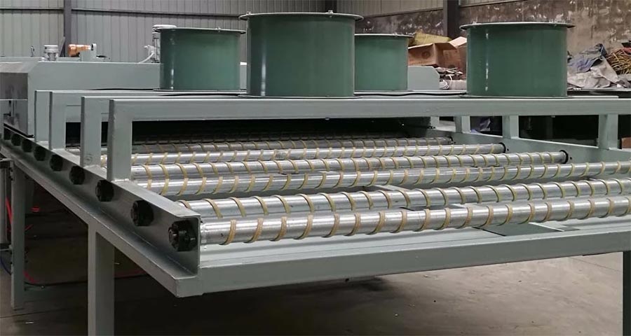Während des Glasdruckprozesses wird die mit Tinte bedruckte Glasscheibe zum UV/IR-Trockner transportiert, um die Tinte auszuhärten.Die Rollen im Trockner sind normalerweise mit Aramidseilen umwickelt oder mit Aramidhülsen ummantelt, um die heiße Glasoberfläche zu schützen.